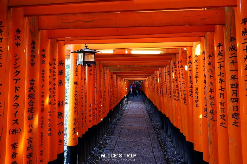 1,300년이 넘는 역사를 자랑하며 일본에 있는 3만여 군데 이나리 신사의 총본산인 교토 후시미이나리타이샤. 외국인이 가장 좋아하는 관광지 1위로 뽑힐 만큼 이국적인 일본 특유의 분위기를 느낄 수 있다. 붉은 토리이가 길게 이어져있어 장관을 이룬다.