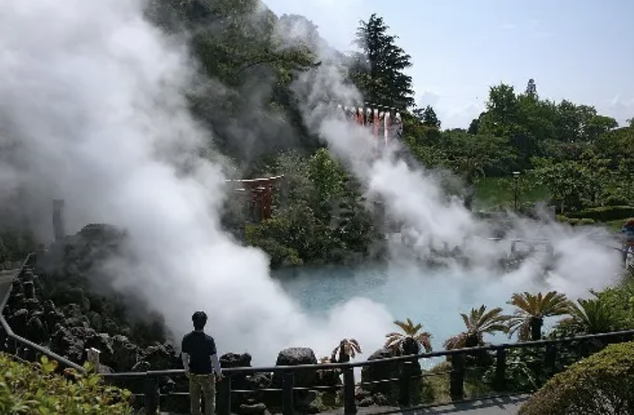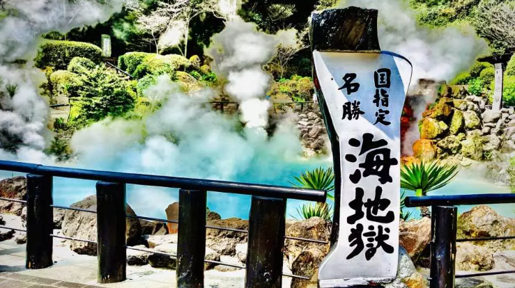 지옥(온천)의 분기와 온수, 지열을 이용한 벳푸만의 관광 명소인 지옥 온천. 지옥 주변에는 족욕탕이 있어 일본에서 최고의 용출량을 자랑하는 벳부 온천을 경험할 수 있다. 물론 이곳에서 경험할 수 있는 온천 달걀은 무료~