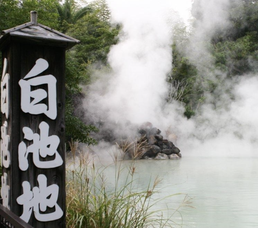 지옥(온천)의 분기와 온수, 지열을 이용한 벳푸만의 관광 명소인 지옥 온천. 지옥 주변에는 족욕탕이 있어 일본에서 최고의 용출량을 자랑하는 벳부 온천을 경험할 수 있다. 물론 이곳에서 경험할 수 있는 온천 달걀은 무료~