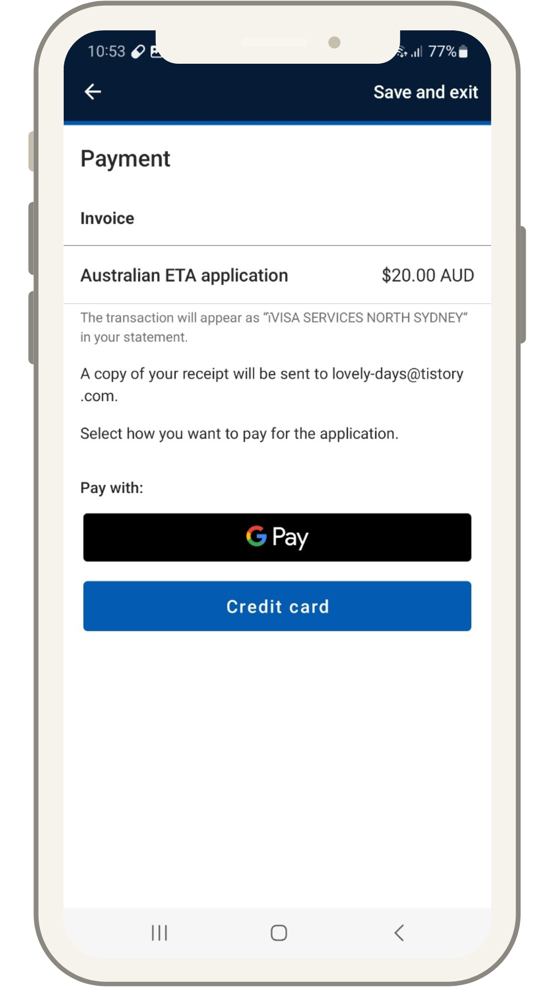 Australian ETA 앱을 통해 ETA를 신청할 수 있다. 앱스토어(Apple) 또는 Google Play 스토어(Android)에서  Australian ETA 앱을 무료로 다운로드할 수 있다.