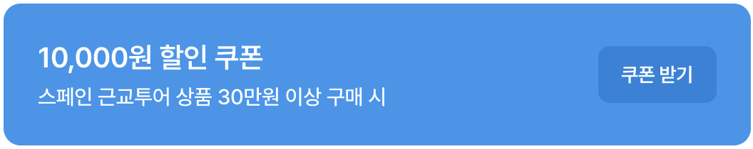 매력적인 풍경을 가진 바르셀로나 근교, 화려함을 포함한 마드리드 근교, 그리고 유럽 정취를 그대로 담아낸 세비야 근굑짜. 스페인 근교 여행을 계획중이라면 꼭 할인쿠폰 사용해서 할인받아 여행을 즐기자!