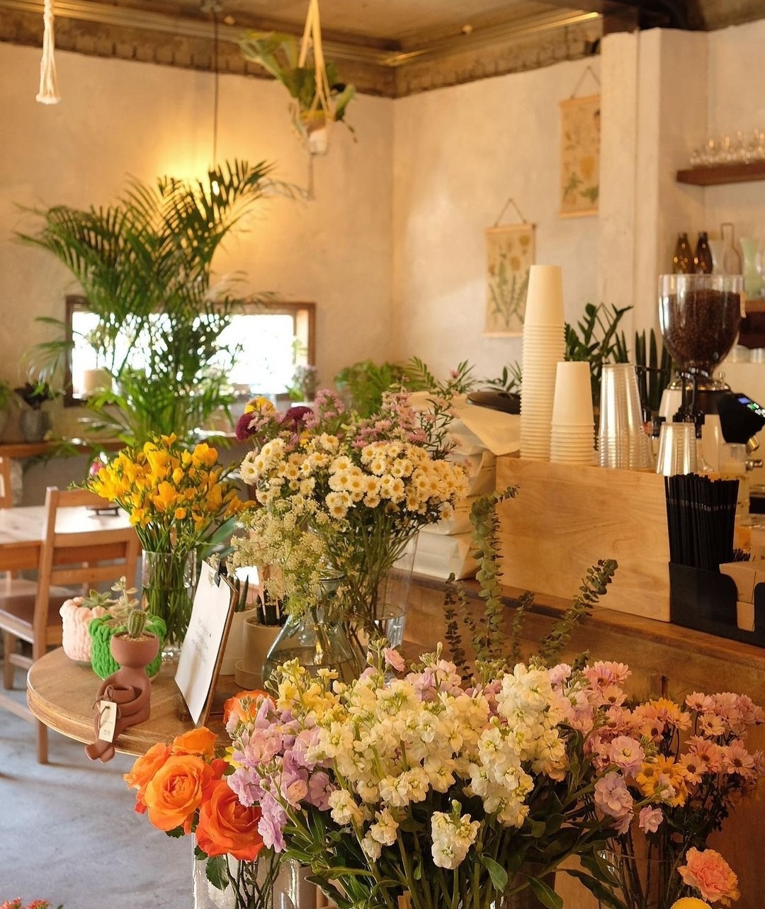 꽃과 커피를 즐길 수 있는 플라워카페인 꽁띠드샤. 카페에 들어가면 꽁띠드샤의 마스코트 고양이 '구땡이'도 있다.