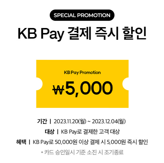 ③ 할인혜택: KB Pay로 5만원이상 결제시 5천원 할인