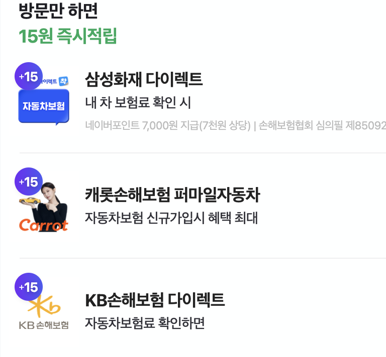 이렇게 광고만 클릭해도 10~15포인트를 매일 적립할 수 있다. 이것만 꾸준히해도 하루에 두 번정도 참여 가능하니까 월 600~800포인트를 모을 수 있다.