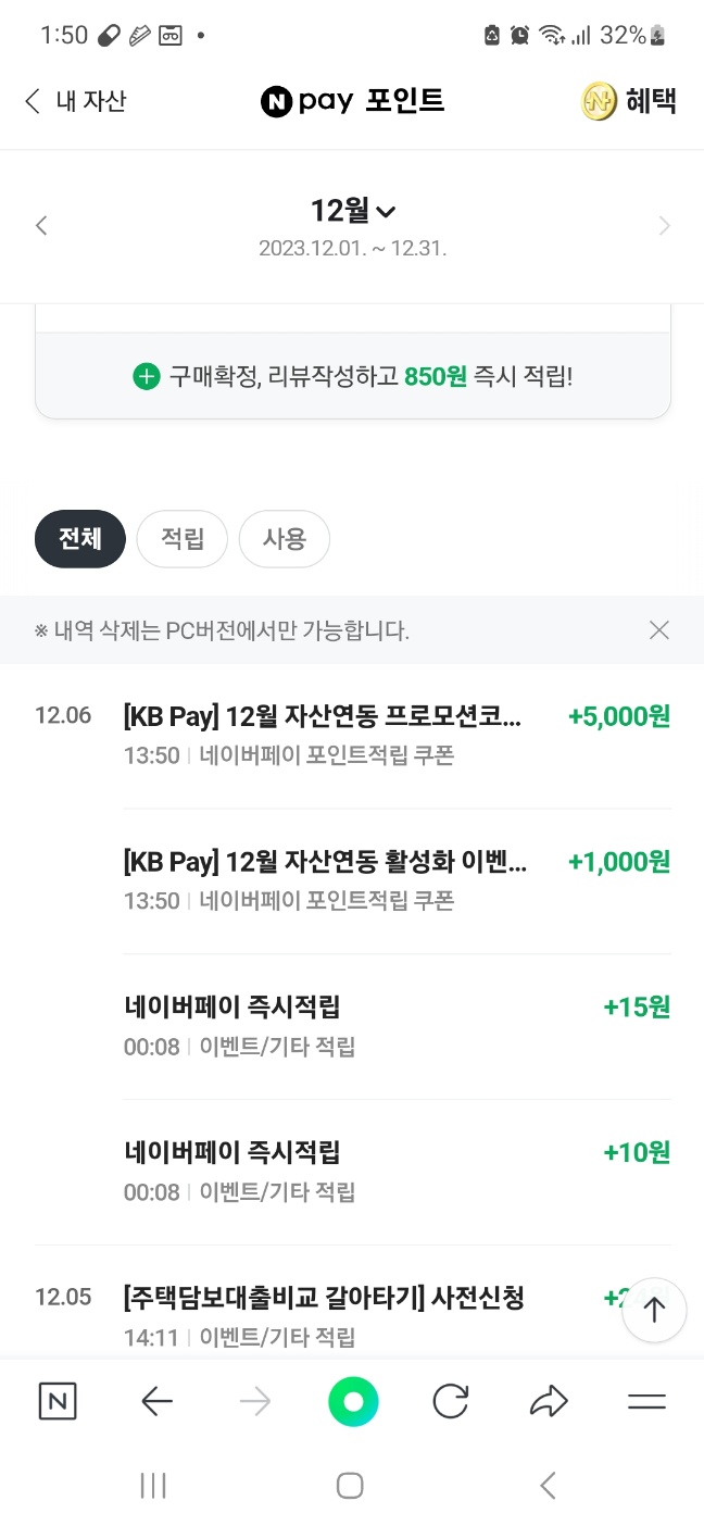네이버 쇼핑을 하거나 이벤트에 참여하면 네이버페이 포인트를 적립할 수 있다. 이렇게 적립된 네이버페이 1포인트 = 1원으로 사용가능하고 네이버페이 결제(삼성페이 통해서)하면 오프라인에서도 포인트를 현금으로 사용할 수 있어서 여러모로 무척 유용하다.