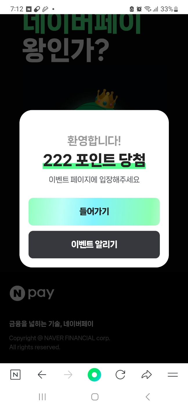 클릭하면 네이버페이 최대 2천 포인트 무료, 네이버페이 왕!