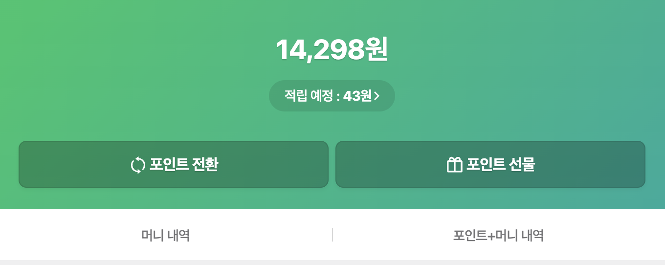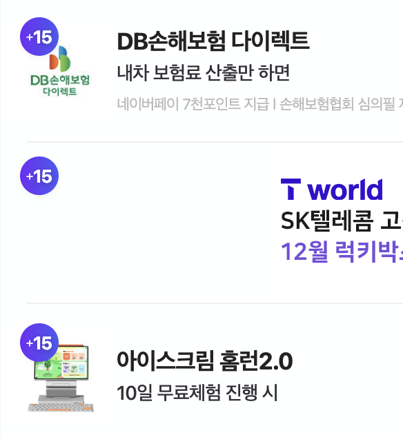 이렇게 광고만 클릭해도 10~15포인트를 매일 적립할 수 있다. 이것만 꾸준히해도 하루에 두 번정도 참여 가능하니까 월 600~800포인트를 모을 수 있다.