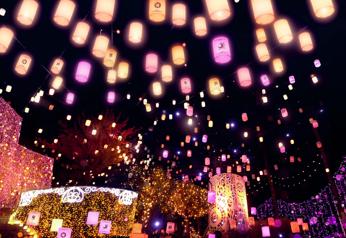 일본 전국시대부터 현대까지 시대의 흐름을 약 350만 개의 일루미네이션으로 표현된 것 역시 특징이다. 오사카의 깊은 거리인 신세카이와 츠텐카쿠, 명물인 타코야키 등 오사카를 상징하는 아이템을 재현한 일루미네이션도 볼만하다.