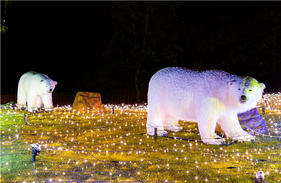 일루미네이션으로 표현된 빙하기의 세계! 펭귄, 북극곰등을 만날 수 있고 반짝반짝 빛나는 빙하기의 세계에 들어선 기분이 든다. 화려하게 빛나는 일루미네이션의 숲에, 딱정벌레나 사마귀 등 거대한 움직이는 곤충 로봇이 있으니 놓치지 마시길!