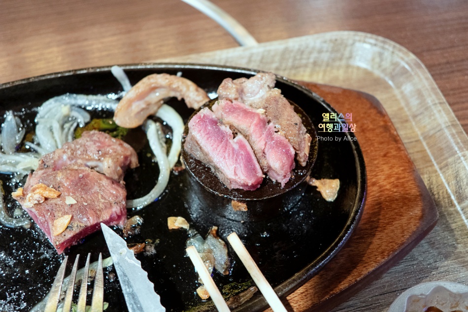 약 1만 원 가격에 200g의 스테이크를 맛볼 수 있다는 점에서 압도적 가성비, 맛은 가격대비 괜찮은 편. 다만 밥은 별도로 주문해야 하고 내가 찍은 사진에 있는 샐러드 역시 추가 주문해야 한다는 점 잊지 말자. 가성비 있게 스테이크를 맛보고 싶다면 추천한다. (대기줄이 없다는 점도 매우 큰 장점이다.)