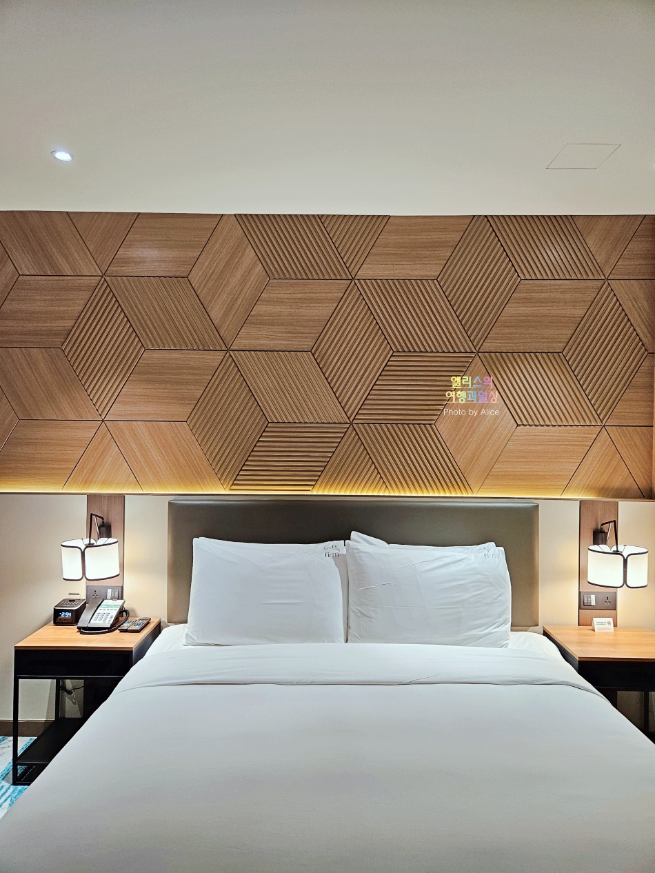 사진을 한 컷에 담다보니 침대가 많이 작아보이지만 실제로는 충분히 넓고 큰 킹 베드였다. 덕분에 충분히 굴러다닐 수 있을 정도였다.
