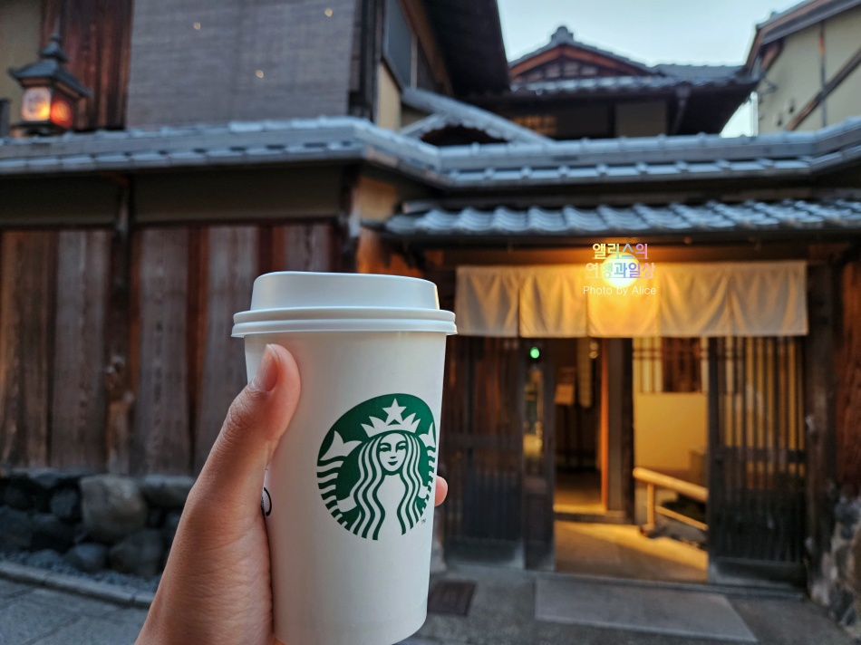 우리에게 익숙한 스타벅스 초록색 로고 간판도 없다. 교토 특유의 특성과 주변 상점과 이질감 없는 모습으로 교토전통 상점 외관 그대로 볼 수 있다.