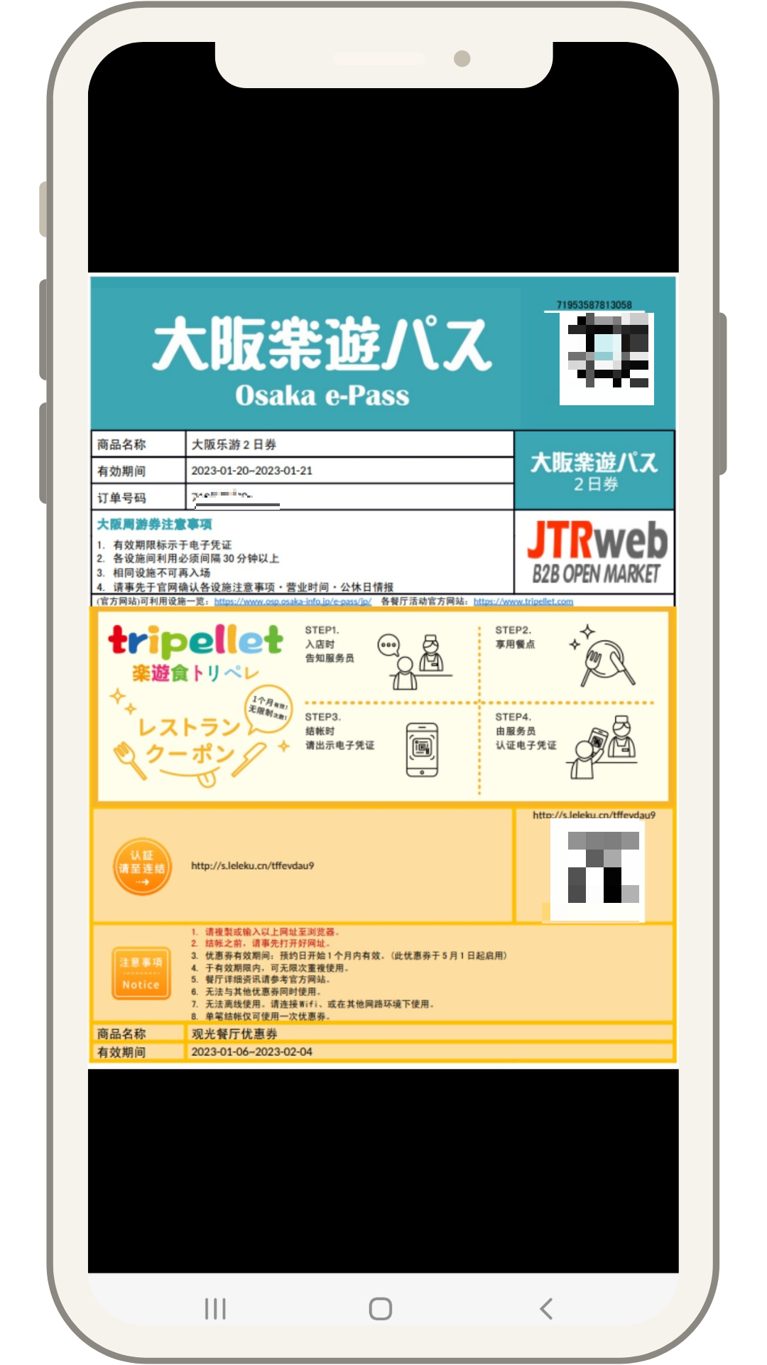 입장 후 미리 구매한 한큐 투어리스트 패스 QR바코드와 함께 여권을 제시한다. 이때 여권 내의 입국 스탬프 페이지를 보여주면 된다.