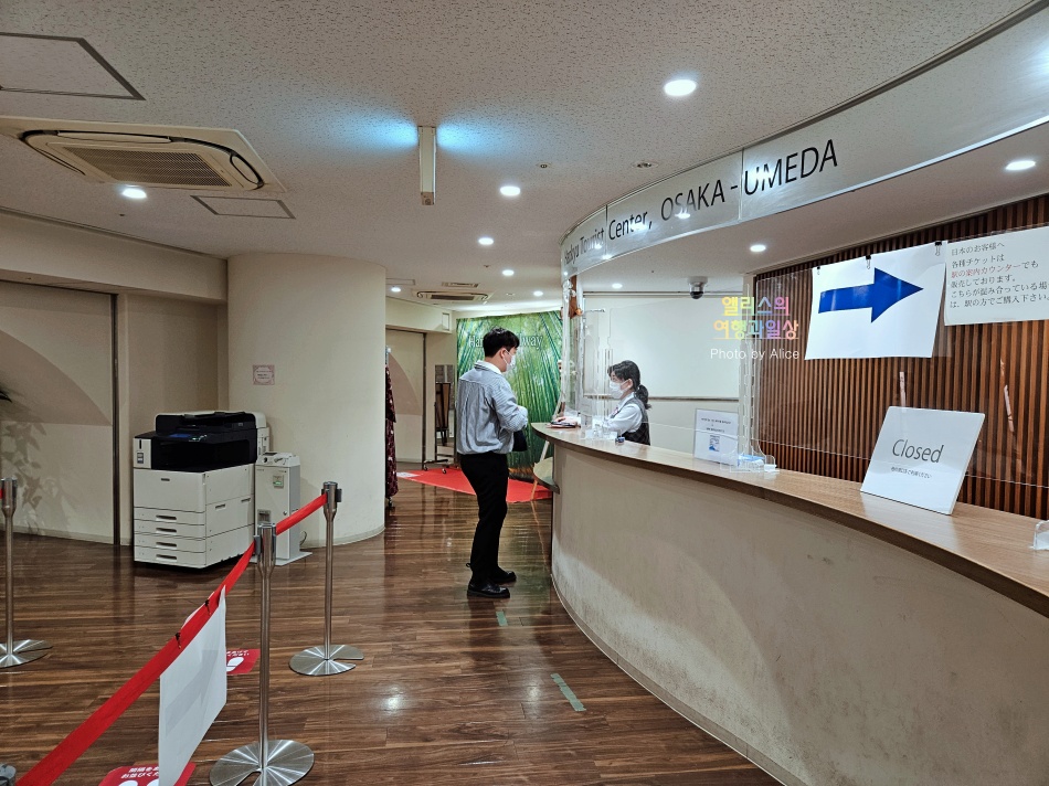 우메다역에서 교환센터를 찾아가려면 말로 설명하기 복잡한 것이 사실이다. 특히 입구가 많은 역이라 안내표지판을 자세히 살펴보길 추천한다. “Hanky Tourist Center OSAKA-UMEDA”라는 글자와 함께 파란색 배경의 알파벳 소문자 I가 빨간색으로 표시되어 있는 길을 따라 이동하는 것이 가장 편리하고 쉽게 찾을 수 있었다.