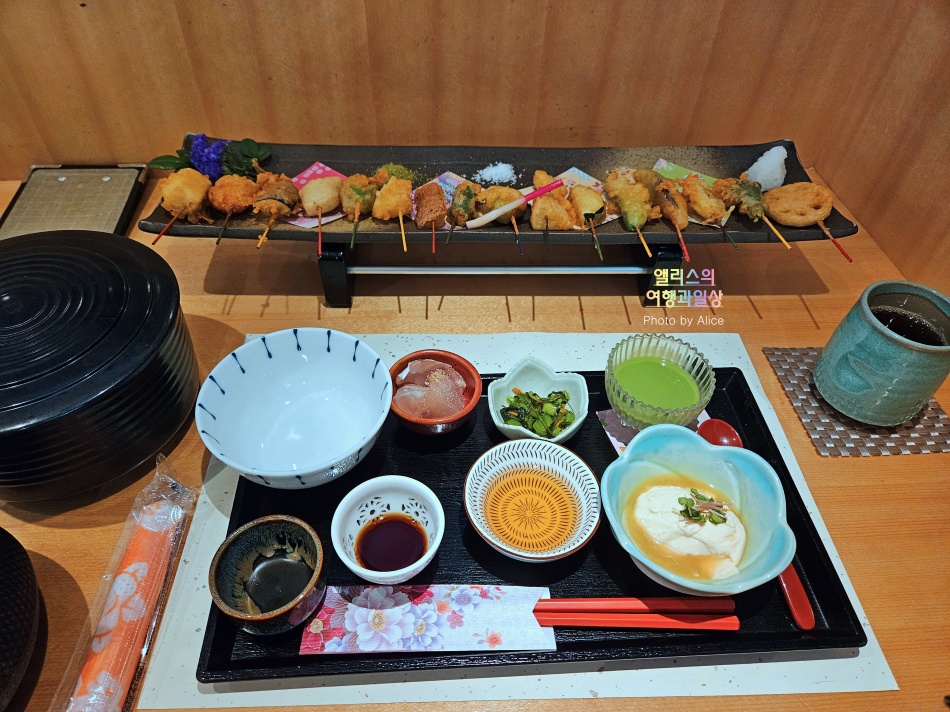 먹음직스럽게 일렬로 늘어선 꼬치 튀김 교토 기온본점 마이코한 후기 0. 교토 마이코한 기본정보 1. 마이코한 기온 본점 내부 모습 2. 마이코한 기온 본점 메뉴 3. 2,820엔 꼬치튀김 세트 @마이코한