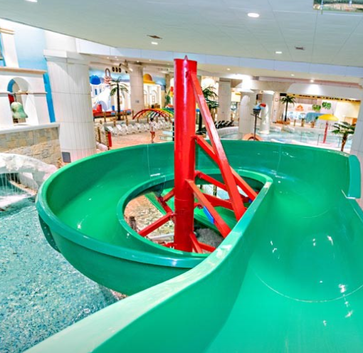 유수풀, 슬라이드, 비치풀, 키즈랜드 등이 마련되어 있고 한식, 양식, 푸드코트, 스낵, 카페 등 다양한 메뉴가 있는 식당가도 있다. 워터파크 이용 후에는 다양한 향과 분위기가 물씬 풍기는 사우나도 이용할 수 있다.