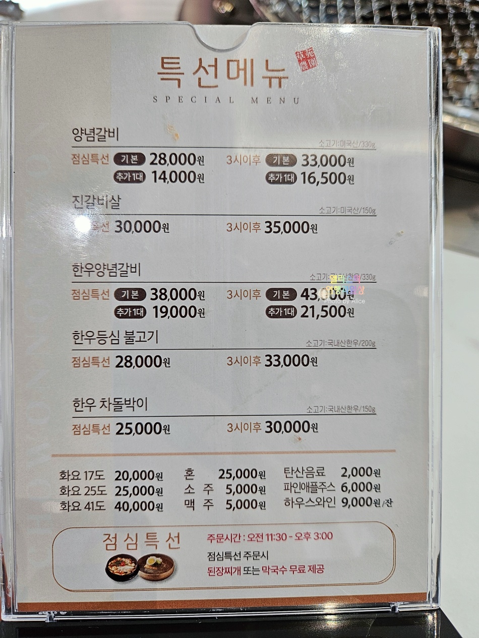 점심특선은 11:30 - 15:00까지 이용가능하니 참고하자.