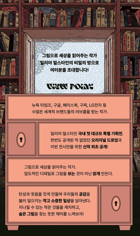 마이아트뮤지엄은 뉴욕타임스, 구글, 페이스북, 구찌, LG 등 글로벌 브랜드와 협업하고, 뉴욕을 넘어 전 세계적으로 사랑을 받는 일러스트레이터 ‘일리야 밀스타인’을 총망라하는 국내 첫 대규모 특별 기획전 ‘일리야 밀스타인 기억의 캐비닛’을 개최한다.