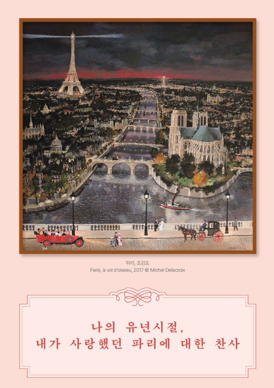 파리의, 파리를 위한, 파리에 의한, 파리지앵의 정수를 담은 현존 화가, 미셀 들라크루아가 그린 파리의 아름다웠던 시절. 그의 탄생 90주년을 맞아 개최하는 세계 어디에서도 볼 수 없었던 대규모 회고전이다.
