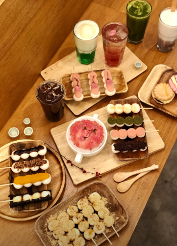 · 당고세트: 쫄깃한 당고에 네가지 맛을 곁들인 당고세트. 단팥/ 딸기팥/ 녹차팥/ 미타라시