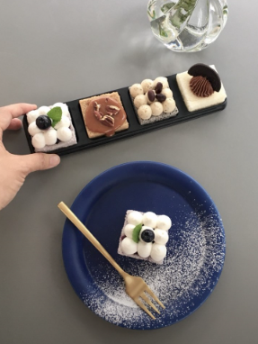 · 블루베리 설기케이크: 누구나 맛있게 먹을 수 있는 떡케이크 중 하나로 블루베리를 직접 갈아 떡시트에 색을 낸 것이 특징이다. 안에는 수제 블루베리잼이 있어 진한 블루베리향과 상큼함이 매력적이다.