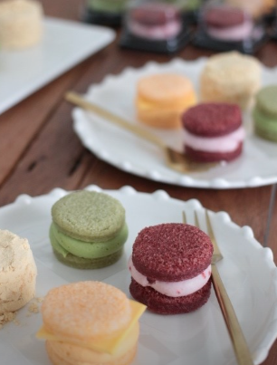 · 단호박 크럼블 설기케이크: 뽀얀 백설기속에 단호박이 있고 크림치즈로 부드럽게 먹을 수 있다. 그 위에 바삭한 크럼블까지!
