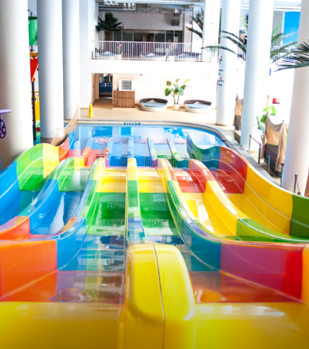 높은 파도와 강한 물살로 급류타기, 길이 370m의 국내 최초 실내형 토렌토리버, 튜브, 볼, 바디, 레이싱 등 다양한 슬라이드 시설이 되어있다. 파도풀, 유수풀과 찜질 스파까지 즐길 수 있다.