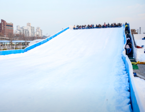 서울의 대표적인 휴식처, 한강 뚝섬 한강공원 수영장 내에 눈썰매장이 개장했다. 뚝섬 한강공원의 눈썰매장은 대형, 소형의 슬로프로 구분되어있다.