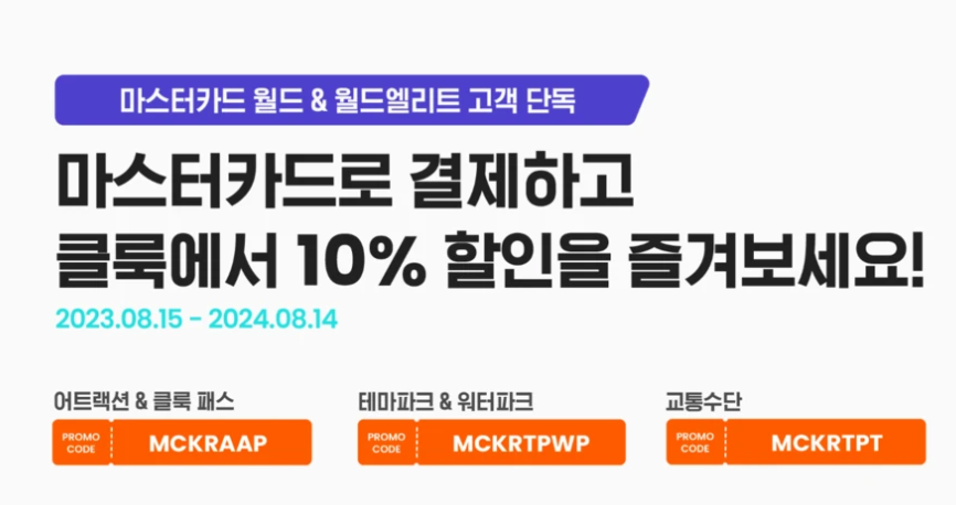 ・ 발급방법: 여기 클릭 후 쿠폰 다운로드 가능하며 해당 마스터카드로 결제시 10% 할인적용 가능