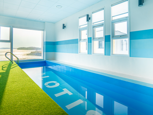 온수옵션을 선택하면 이용시간 제한없이 24시간 내내 33도 이상의 온수수영장을 이용할 수 있다. 냉수수영장은 무료이다. 대부해솔길4코스내의 고랫부리해변과 도보9분이내에 위치하고 있다.