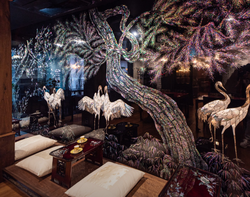 세계적인 옻칠의 거장 전용복 작가의 다수의 작품과 목단가옥에서만 볼 수 있는 실내 장식으로 완성된 아름다운 공간이다.