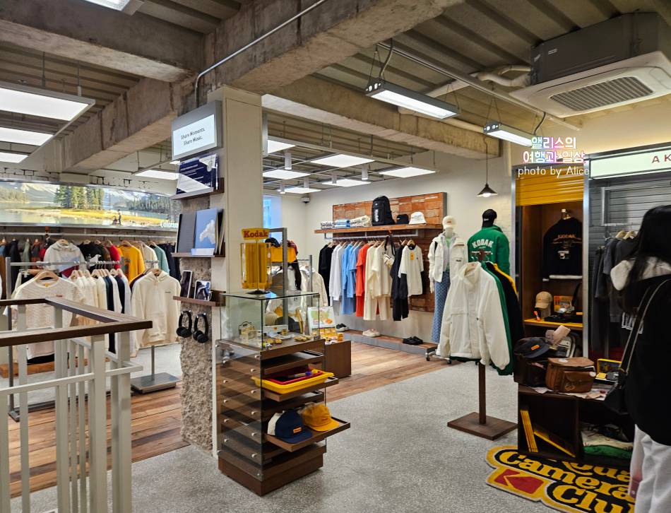 해외 골목 모퉁이에 있는 작은 필름 숍에서 영감을 받은 코닥 코너샵. 단순히 제품만 판매하는 곳이 아니라 130여 년 역사의 코닥(Kodak) 필름 아카이브와 헤리티지를 경험할 수 있는 콘텐츠를 채운 공간이다. 코닥 코너샵에서만 볼 수 있는 커스텀 굿즈 제작, 음악 감상 등 코너들이 기획되어 있다.