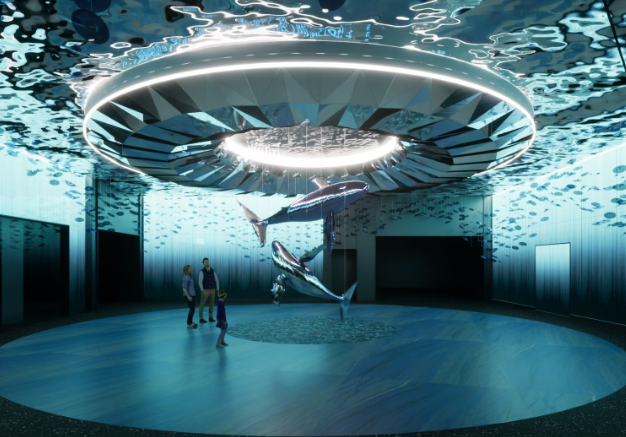 길이 150m에 달하는 천장과 높은 벽면을 초고화질 LED로 가득 채워 초현실적인 장면을 현실감 있게 구현한 몰입형 디지털 엔터테인먼트 거리.고해상도 LED와 천장으로 뻗어 있는 초대형 기둥의 LED는 초현실적인 디지털 콘텐츠를 몰입감 있게 구현한다.
