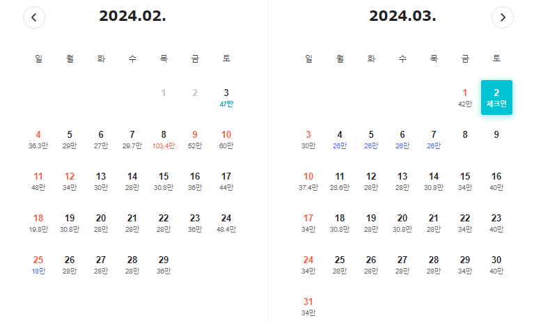 최저가는 1박 기준 20만원 초반대도 가능하지만