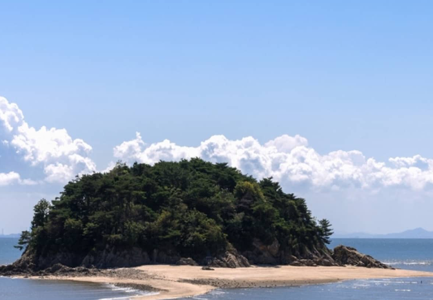 2012년 CNN이 선정한 한국에서 가장 아름다운 섬인 선재도와 목섬. 썰물 때는 500m에 달하는 바닷길이 열리면서 바다가 양쪽으로 갈라지는 모습이 마치 모세가 홍해를 건너는 듯한 느낌을 연상시킨다
