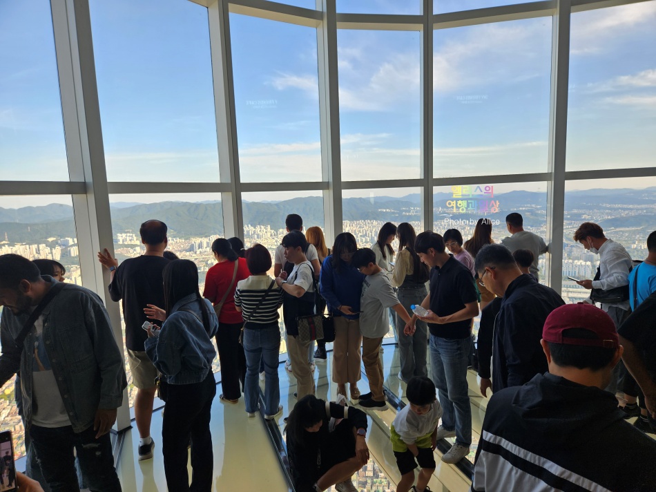 기네스 월드 레코드에 가장 높은 유리바닥 전망대로 오른 스카이데크는 서울 스카이에어서 핵심 장소다. 잠실역 사거리를 그대로 하늘 아래서 내려다볼 수 있는 공간이자 많은 사람들이 가장 스릴을 느끼는 공간이다.