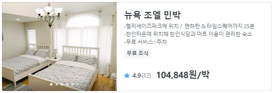 뉴욕 호텔 비싸기는 엄청 비싸서 숙박비는 잘 줄여도 여행비용을 상당히 아낄 수 있다. 이런 점에서 한인민박은 ① 깔끔하게 이용할 수 있고 ② 무료 조식에 ③ 숙박비도 아끼고 ④ 주인장으로부터 한국어로 편하게 안내받을 수 있어서 여러모로 장점이 많다.