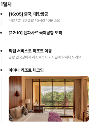 ① 1일차: 인천 - 발리 이동, 픽업 서비스로 리조트 이동, 아야나 리조트 체크인