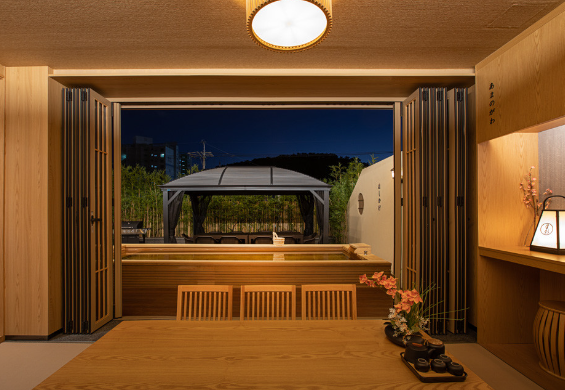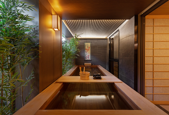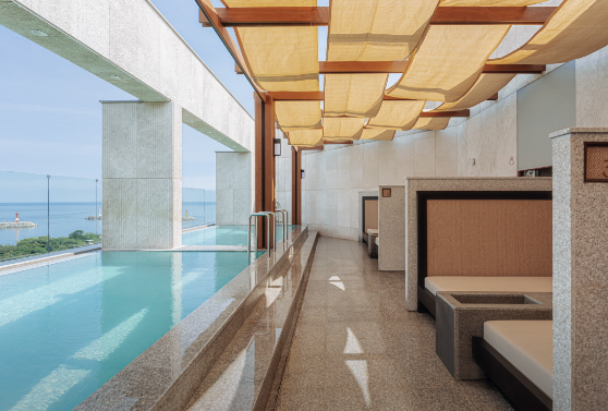 전 객실 야외에 히노키탕을 비치하여 야외 노천탕의 분위기를 즐길 수 있으며 각 시간대별로 90분 간 개별로 이용할 수 있는 수영장을 무료로 대여해주고 있다.