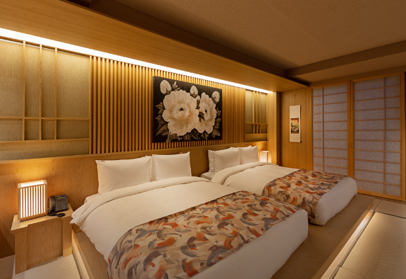 만덕산이 한눈에 보이는 마운틴 뷰를 자랑하는 한국에서 즐기는 정통 일본식 료칸으로 전 객실에 히노끼 욕조가 완비되어 있다.
