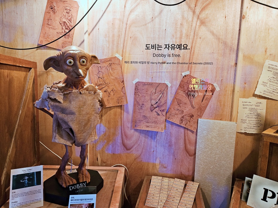 실제 소품은 물론 피규어들도 있었다. 피규어 크기도 다양했지만 상당히 사실적이었다. 해리포터에 사용되는 마법사의 지팡이도 섬세하게 전시되어 있었다.