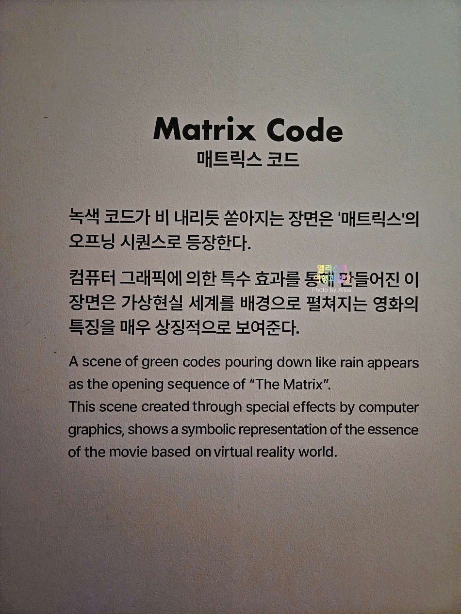 매트릭스 코드로 둘러싸인 공간도 있었다.