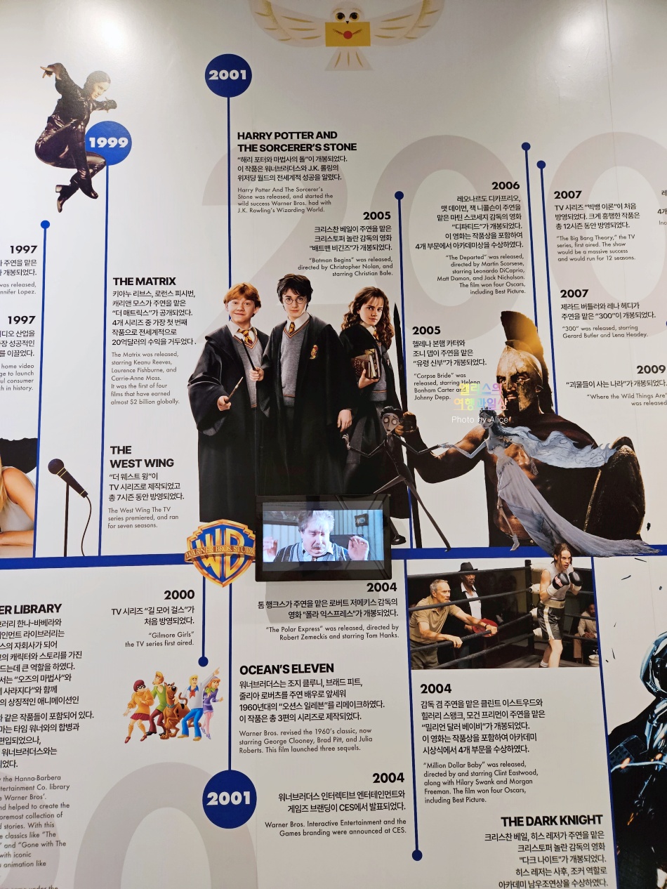 100주년이라는 긴 시간 동안 워너브라더스가 걸어온 길 위의 작품들이 설명되어 있다.