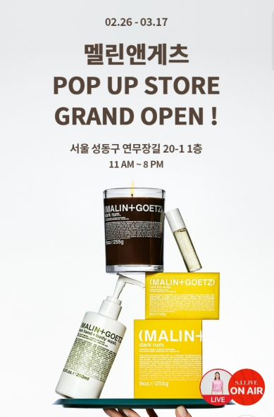 최신의 과학적 요소를 안전한 성분으로 기본에 충실한 섬세한 설루션을 제안하는 멜린앤게츠. 이번 팝업에서는 베이럼에서 영감을 받아 전통적인 다크+스파이시 향의 신선한 재창조가 돋보이는 다크 럼 컬렉션도 경험해 볼 수 있다.