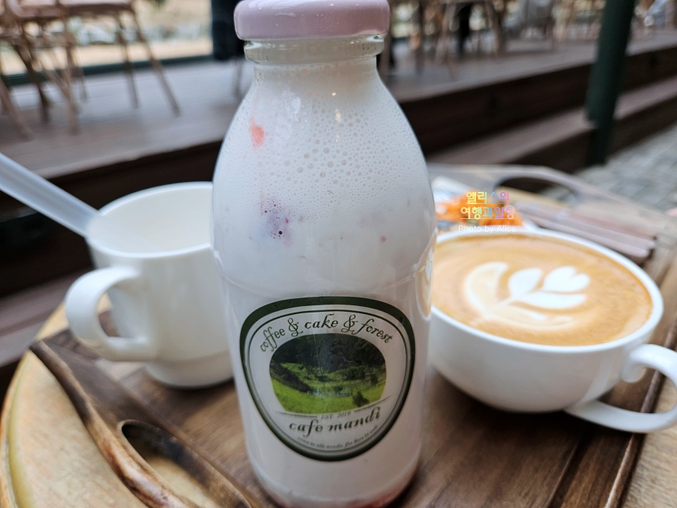바닐라라테는 향이 좋았고 수제 딸기 라테도 괜찮았다. 양도 많고 딸기 건더기도 충분했다.