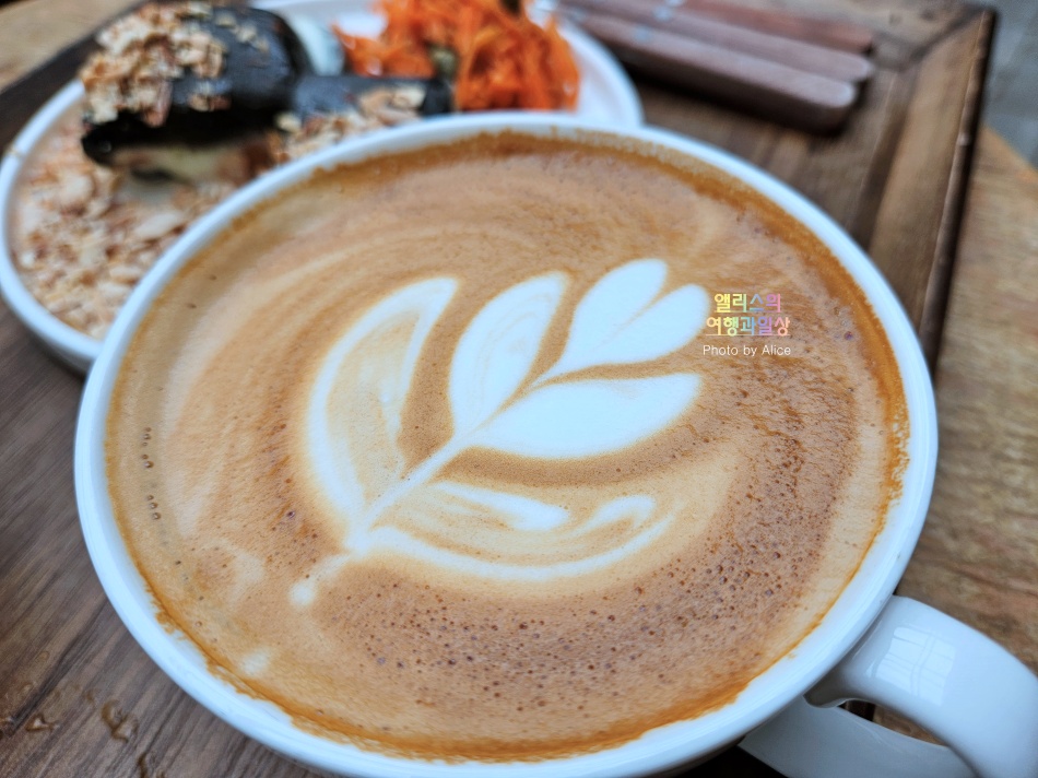 파니니는 맛이 없을 수 없는 재료들로 구성되어 있었다. 푹신한 까망베르 파니니에 치즈 듬뿍+꿀과 함께 고소한 결과류가 잔뜩 뿌려져 있으니 이게 맛이 없을 수가 없는 구성. 아쉬운 점은 당근라페라고 생각했는데 당근 라페가 아닌 것 같은.. 내 취향이 아닌 당근 샐러드가 이런 좀.. 별로였다.