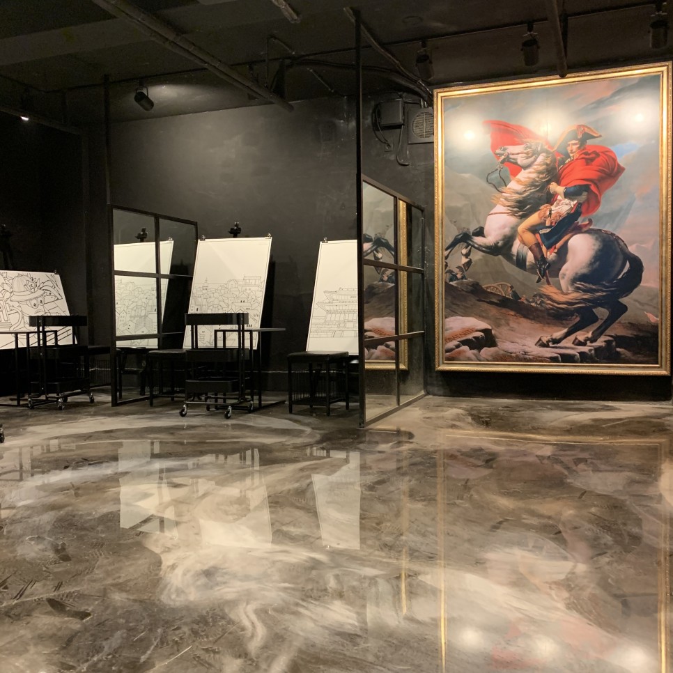 커플,친구,부모님과 아이 등 다양한 연령대가 즐기기 좋은 홍대놀거리가 파티션으로 공간 분리가 잘 되어 있는 편이라서 최소 2인부터 최대 6인까지 한 공간 안에서 그릴 수 있고 혼자 와서도 체험하기 좋다.