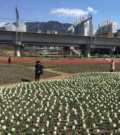 낙동강변을 따라 조성된 화명생태공원에 7만 송이 튤립이 3월20일 현재 활짝피어 관광객을 맞이할 준비가 되었으니 우리는 이 아름다운 튤립을 만나러 가보자~