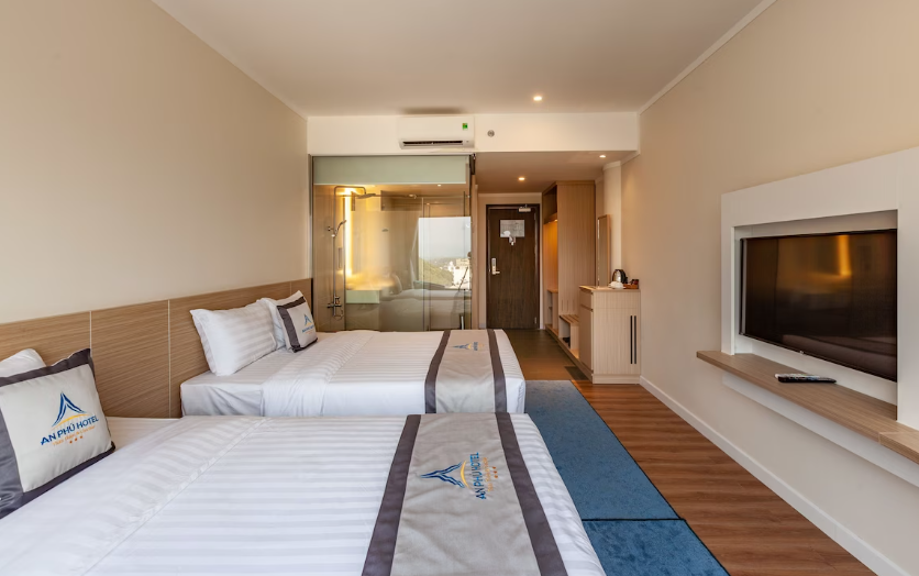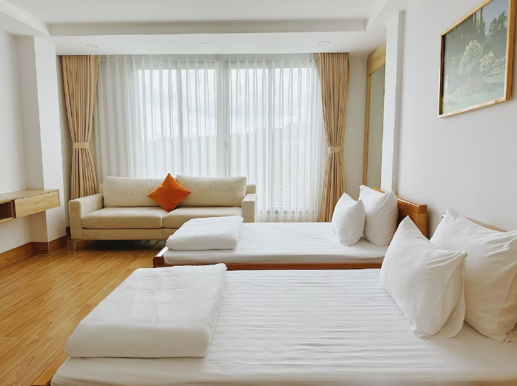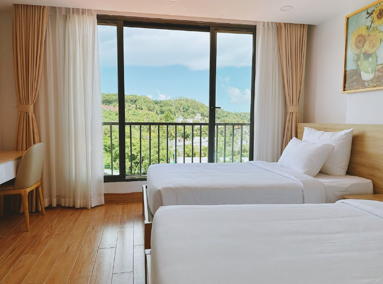 객실에서 강을 볼 수 있는 뷰가 있으며 저렴한 가격에 넓은 객실이 장점이다.  즈엉동 시내에 위치하고 있어서 여행하기다.