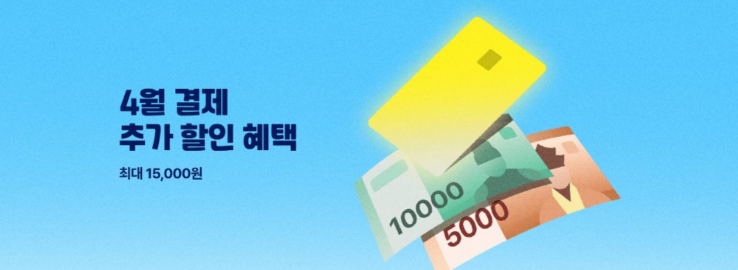 - 혜택: 카카오페이머니로 투어, 티켓 상품 15만 원 이상 결제 시 6% 즉시 할인 (최대 1만 원 할인)